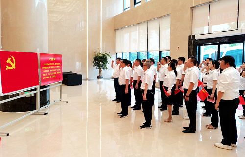 全体党员在鲜红的党旗下高举右手,重温入党誓词。誓言铮铮,掷地有声,增强全体党员的责任感和使命感,坚定大家在新时代、新征程上永远跟党走的决心和信心。随后,大家以快闪的形式合唱《没有共产党就没有新中国》《歌唱祖国》两首经典红歌,共同庆祝中国共产党百年华诞。大家纷纷表示,将坚定不移听党话、感党恩,跟党走,以实现中华民族伟大复兴为己任;坚持不懈,砥砺奋进,不负时代,不负韶华;为高质量推进“气化湖南工程”,促进实施“三高四新”战略,奋力建设现代化新湖南贡献智慧和力量。